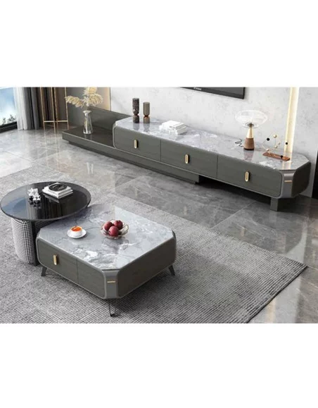 MEUBLE TV REF T8035+TABLE BASSE MARBRE