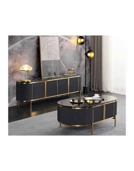 MEUBLE TV REF T8035+TABLE BASSE MARBRE REF A8035 GRIS/DOREE