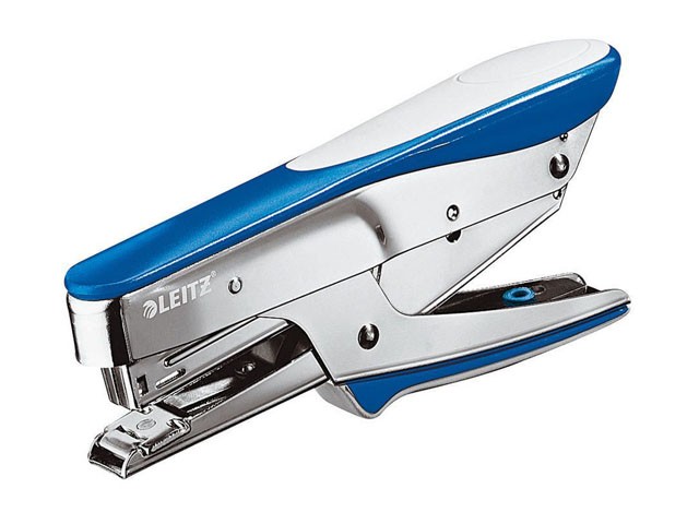 L’agrafeuse de bureau BB 8/4 5546 ergonomie et design de la marque Leitz a une superbe coloris bleu acier et un soft grip facilitant la prise en main.