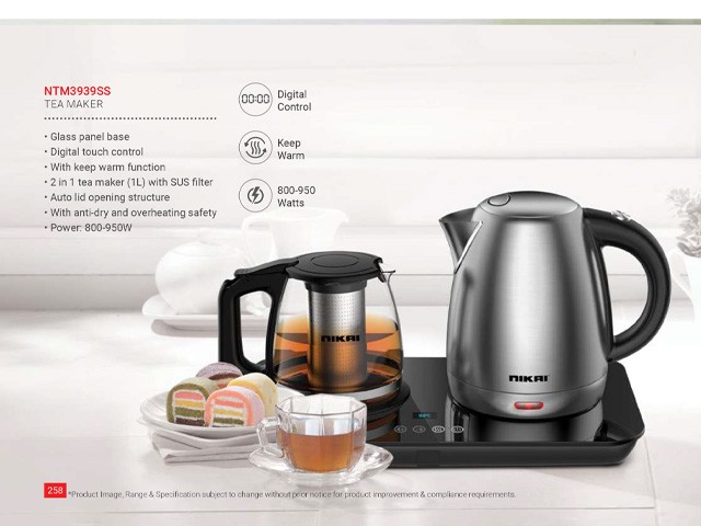 BOUILLOIRE ELECTRIQUE 1.8L NIKAI INOX+THETHIERE VERRE 1.2L NTM3939S
