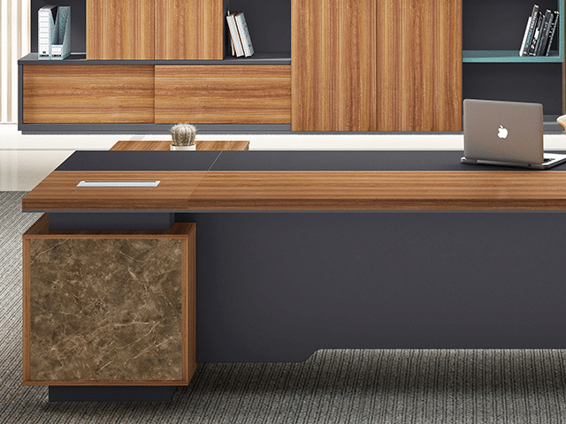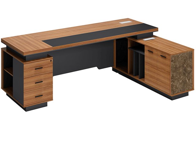 Le bureau de direction HBA01-2220 R/L a été conçu pour répondre aux exigences des environnements professionnels haut de gamme. Alliant modernité et sobriété, il s’impose comme un mobilier représentatif, capable d’affirmer le prestige d’un espace de travail sans être trop imposant. Son design contemporain, aux lignes épurées, reflète l’élégance, la culture d’entreprise et le style individuel du dirigeant.