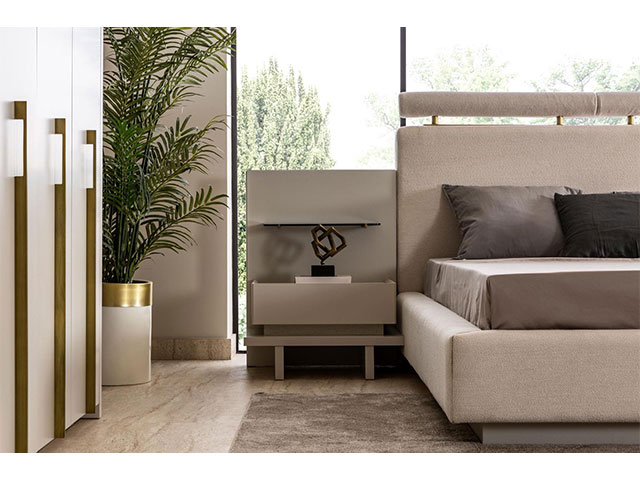 La chambre à coucher BELEK 180×200 associe deux teintes contemporaines, marron et blanc,