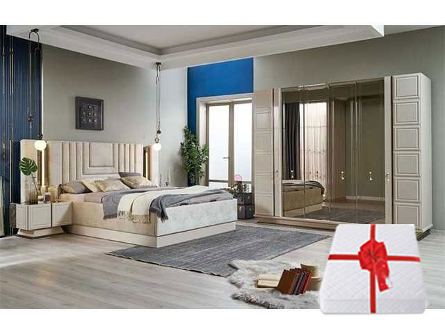 CHAMBRE A COUCHER 180X200 COMPLETE FELIX BATTANTES BEIGE+MATELAS Z