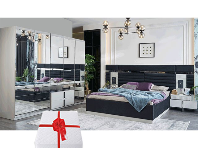 CHAMBRE A COUCHER 180X200 COMPLETE LAGOS PORTES BATTANTES+MATELAS Z