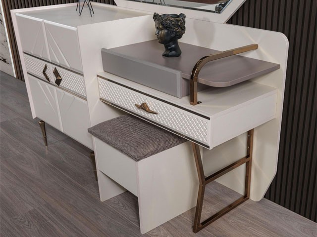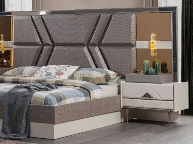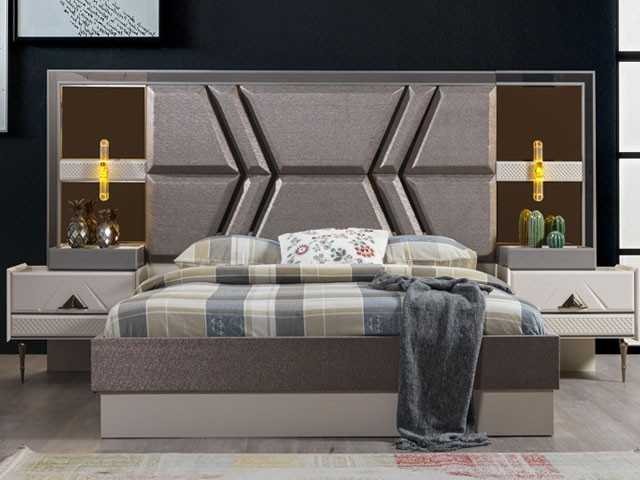 CHAMBRE A COUCHER 180X200 COMPLETE LUX PORTES BATTANTE MARRON BEIGE Z
