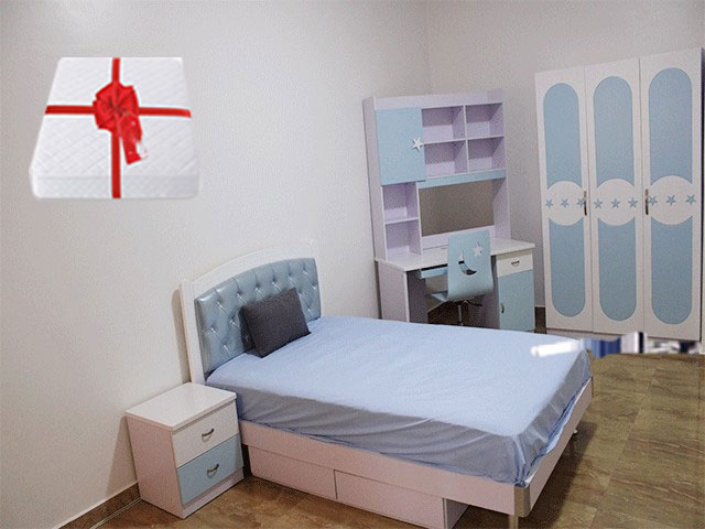 La chambre à coucher enfant Réf. 851 est conçue pour offrir un espace de repos moderne, pratique et parfaitement adapté aux besoins des plus jeunes. Avec sa combinaison harmonieuse de bleu clair et de blanc, elle crée une ambiance apaisante, idéale pour favoriser la détente, le sommeil et la créativité de l’enfant.