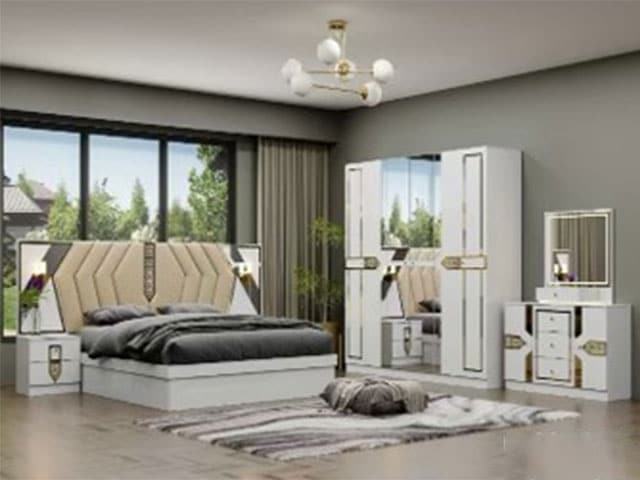 La chambre à coucher réf. HN 301 associe le blanc à des finitions dorées pour créer un espace de repos lumineux et structuré. Son design équilibré et ses dimensions compactes permettent d’aménager la chambre de manière fonctionnelle, tout en apportant une touche décorative discrète. La chambre à coucher réf. HN 301 présente un design contemporain avec une combinaison de couleurs blanc et doré. Elle constitue une solution pratique pour équiper une chambre confortable et bien organisée, adaptée à différents styles d’intérieur.