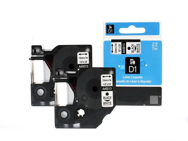 ETIQUETTE DYMO label D1 12 mm X7M I 1/2 IN X23 FT NOIR BLANC