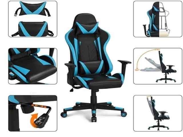 FAUTEUIL ORTHOPEDIQUE GAMING EN PU G-213 BLEUE/NOIRE 67.5*55*123 -131