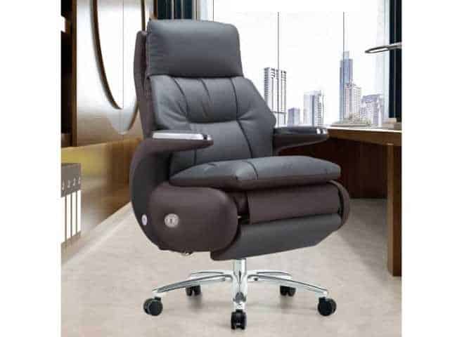 Le fauteuil Président Électrique A022 en cuir gris foncé offre un confort premium avec son système de massage intégré, idéal pour réduire la fatigue au bureau tout en apportant une touche élégante et moderne.