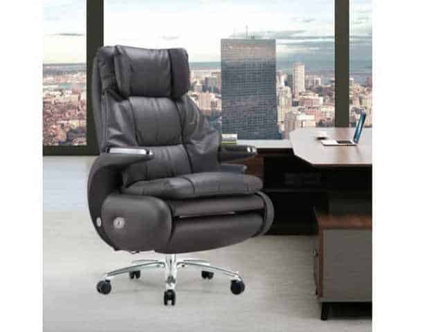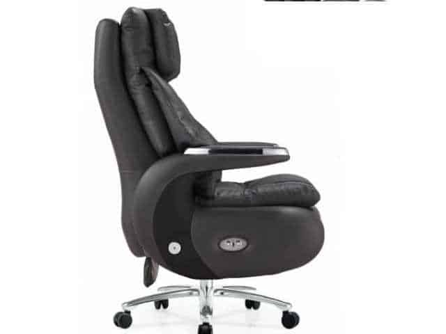 Fauteuil Président A026 en cuir gris foncé avec massage électrique intégré, conçu pour offrir un confort premium et un style moderne au bureau.