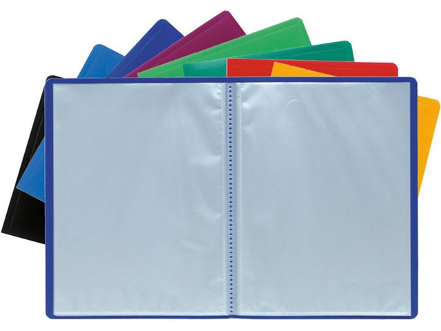 Ce porte-vue bleu souple vous permet de stocker jusqu’à 120 feuilles dans 60 pochettes plastiques.
