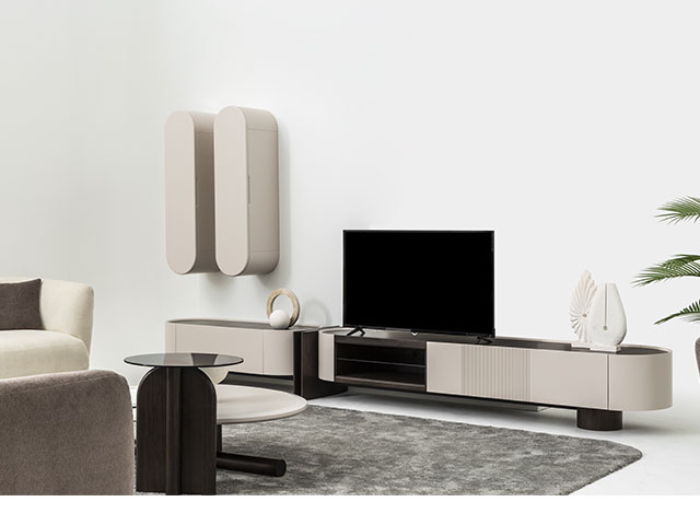 Le Meuble TV se distingue par son design épuré et contemporain, offrant des compartiments pratiques pour ranger vos appareils multimédias, décodeurs, consoles et accessoires. Sa structure solide garantit stabilité et durabilité, tandis que ses finitions soignées ajoutent une touche décorative chic.