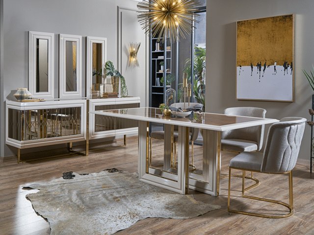 Le buffet apporte une touche de lumière et d’élégance grâce à ses finitions raffinées, tout en offrant un espace de rangement optimal. Le meuble TV, avec son design moderne et épuré, crée un espace fonctionnel et esthétique pour vos équipements multimédias.