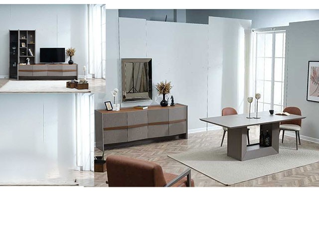 MEUBLE TV OLIVIA 490x2210x280+BUFFET MIRROIR+TAM 6 PLACES