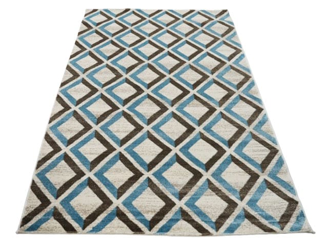 Moquette décorative de dimensions 160 x 230 cm, associant les couleurs beige, marron et bleu. Idéale pour habiller un salon, un bureau ou une chambre avec sobriété et confort.