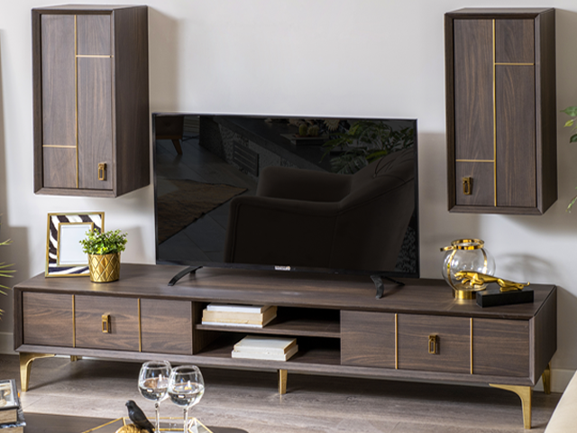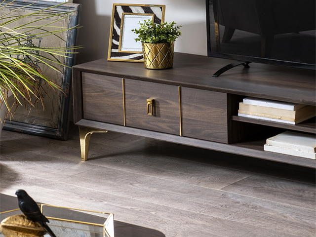 Ce meuble tv design ajoute une touche d’originalité avec sa forme moderne.