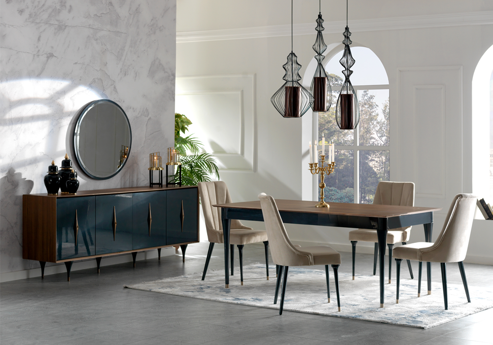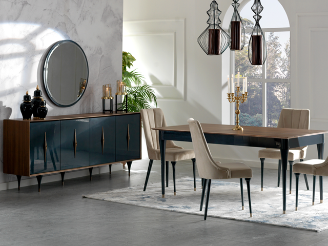 Cette enfilade, composé de 5 Eléments : Meuble TV + Buffet + Table à Manger + Chaises (6), Table basse+table basse saura vous charmer par sa qualité et ses finitions exceptionnelles.