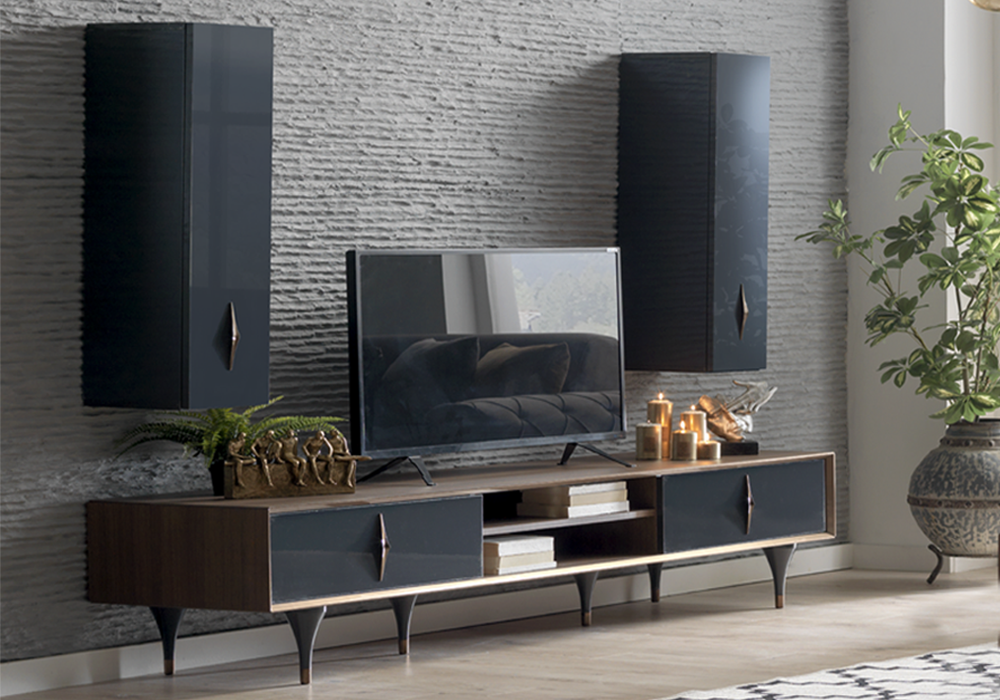 Ce meuble tv design ajoute une touche d’originalité avec sa forme moderne.
