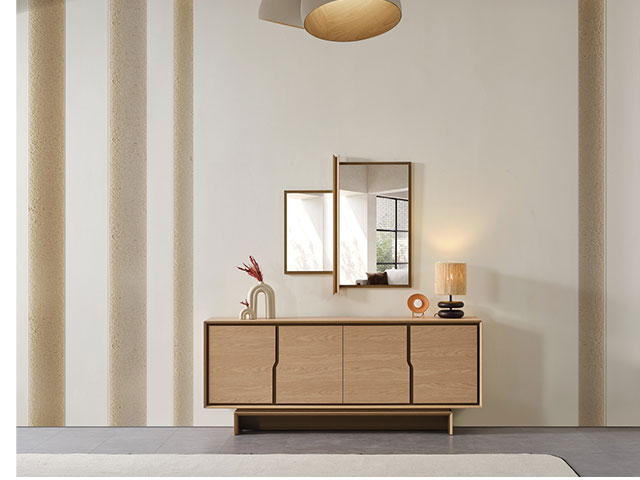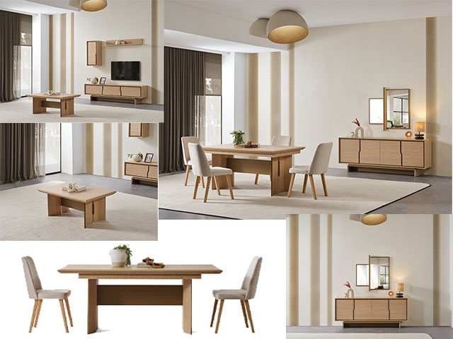 Le Pack Rota réunit une console avec miroir, une table basse, une table TV et une table à manger 6 places. Un ensemble pensé pour harmoniser le séjour et la salle à manger avec des meubles coordonnés et fonctionnels