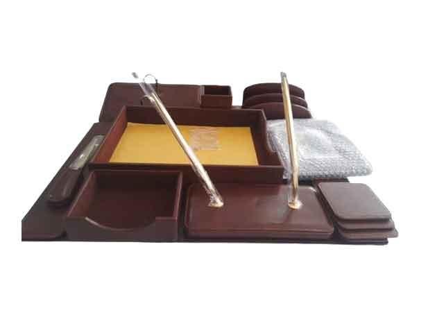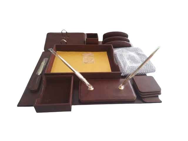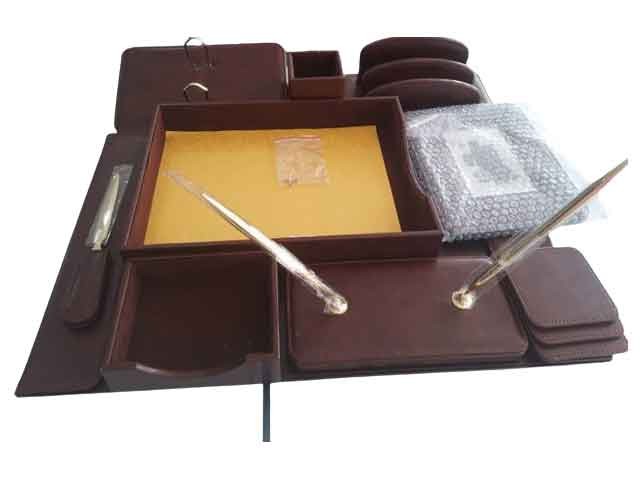 PARURE DE BUREAU EN CUIR 10 PIECS W1069-1 MARRON