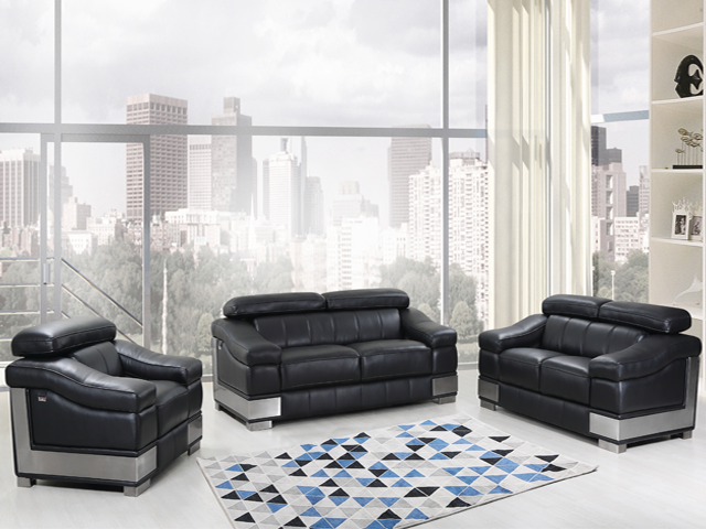 SALON CUIR 6 PLACES S-415 COULEUR A90 NOIR