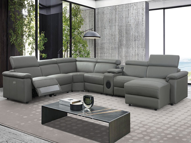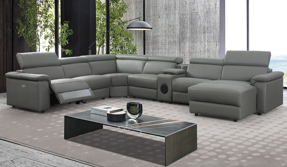 Superbe canapé d’angle avec relax électriques, en cuir de grand luxe.