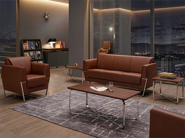 Offrez à votre espace professionnel une touche de prestige avec le salon de bureau 5 places SF-169 en finition PU marron. Conçu pour allier élégance, confort et durabilité, ce mobilier est idéal pour accueillir vos clients dans un cadre chaleureux et professionnel.