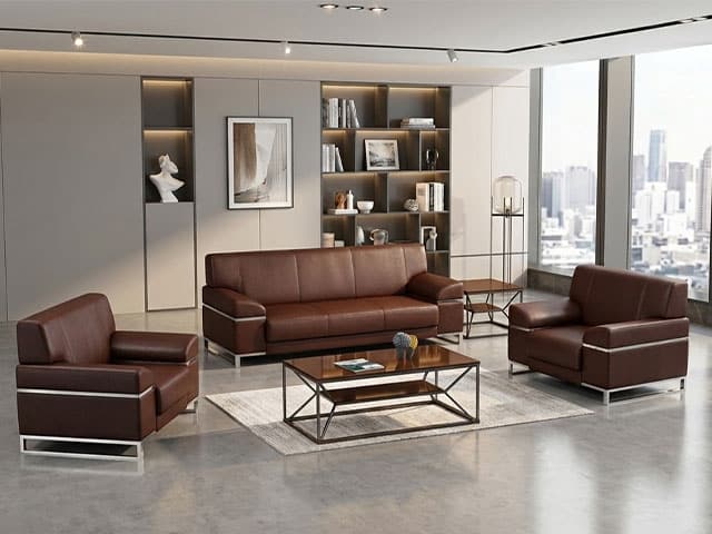 Offrez à votre espace professionnel une image élégante et accueillante avec le salon de bureau 5 places KS-2003 en PU marron, conçu pour répondre aux exigences des entreprises modernes à Dakar et partout dans le monde.