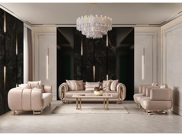 Ce salon est adapté pour les salons familiaux, les appartements spacieux et les espaces de réception. Il constitue une solution pratique pour ceux qui recherchent un mobilier confortable, esthétique et facile à intégrer dans différents environnements.