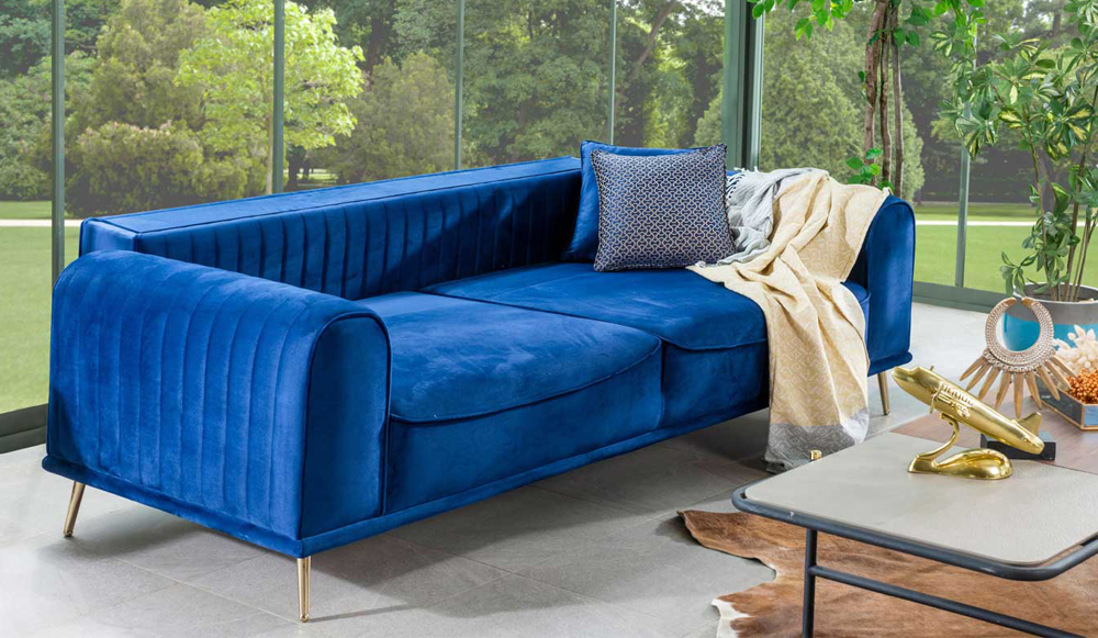 SALON TISSU 6 PLACES VOLETA COULEUR BLEUE G52/ BEIGE G58