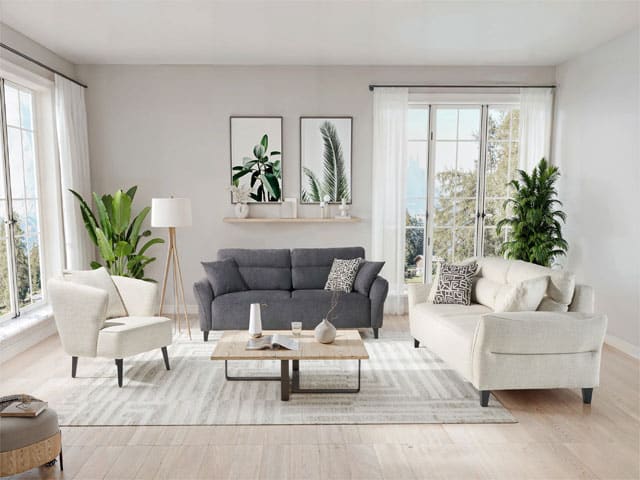 Habillé d’un tissu de qualité en coloris beige et gris foncé, ce salon combine sobriété et modernité. L’association de ces deux teintes apporte une touche harmonieuse et contemporaine à votre intérieur, tout en facilitant son intégration dans différents styles de décoration. Le tissu est agréable au toucher, résistant et conçu pour un usage quotidien.