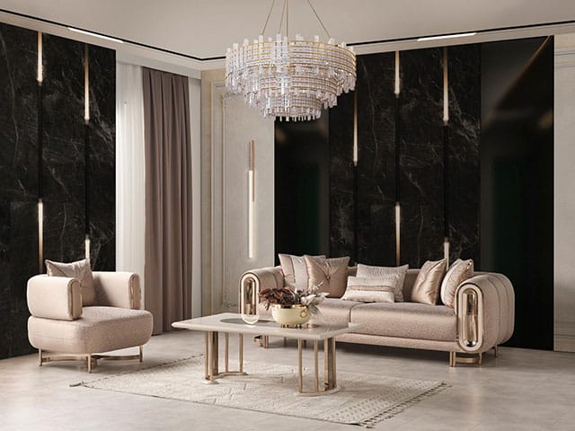 Que ce soit pour votre maison ou un espace professionnel, ce salon devient un véritable élément central qui valorise votre environnement. Il incarne le parfait équilibre entre design, confort et modernité.