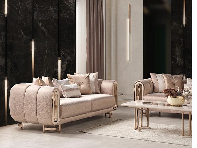 Adoptez ce salon en tissus d’exception et créez une ambiance chaleureuse, élégante et haut de gamme dans votre intérieur.