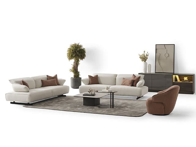 Grâce à son assise moelleuse et ergonomique, ce salon garantit un confort optimal pendant de longues heures de détente. La structure solide assure une excellente stabilité, tandis que le tissu résistant offre une durabilité remarquable et un entretien facilité. Les finitions soignées et les lignes épurées renforcent son allure chic et contemporaine, faisant du salon ROYAL un choix idéal pour valoriser votre séjour.