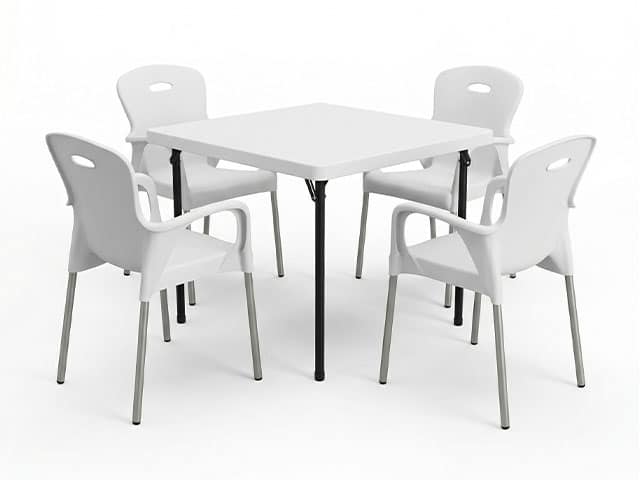La table à manger 4 places en plastique Réf F88 couleur blanche est conçue pour répondre aux besoins des particuliers et des professionnels recherchant un mobilier simple, résistant et facile à entretenir.