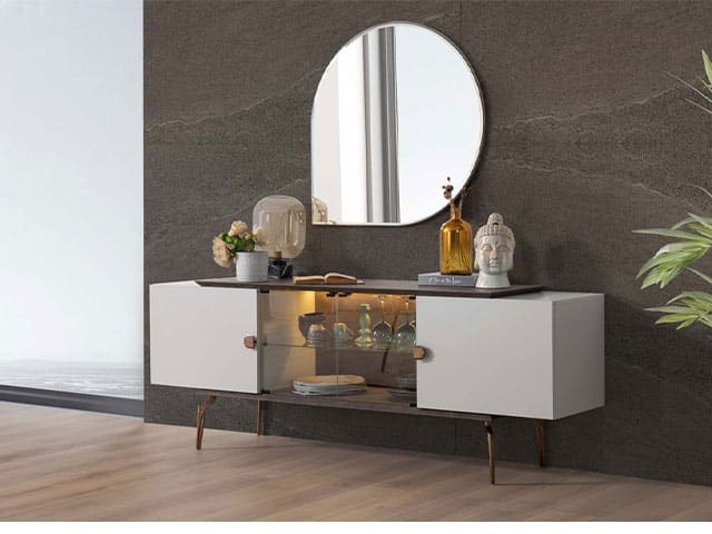 Un buffet avec miroir pour le rangement et la mise en valeur de votre décoration