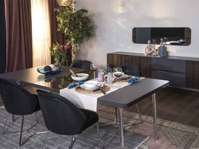 TABLE A MANGER 6 PLACES REVEN EXTANSIBLE 1640*982*750 MARRON GRIS