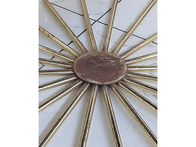 Cette table basse BUKET moderne composée d’une structure en métal doré sur lequel repose un plateau en verre.