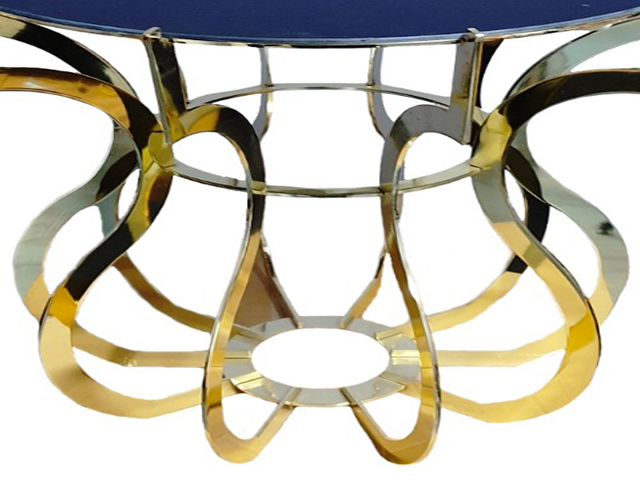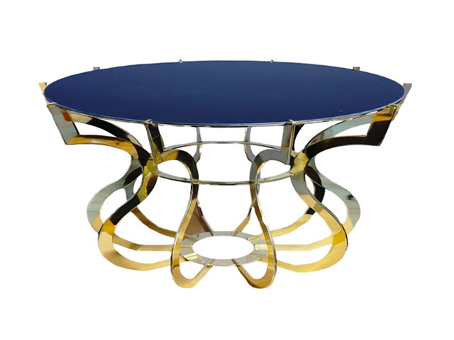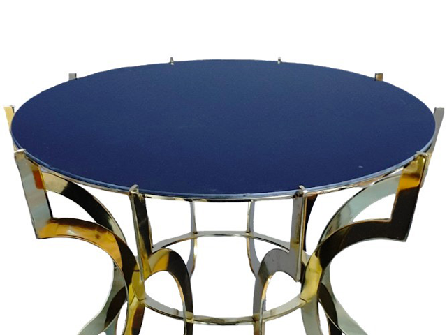 Elégant, son plateau miroir sera monté sur une structure ronde métallique doré.