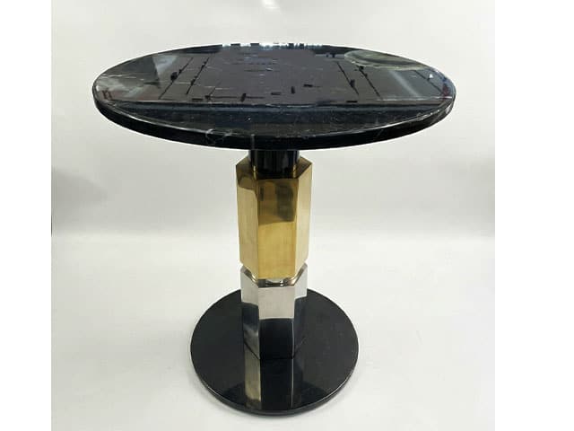 Sa finition en marbre noir associée à une structure dorée permet une intégration dans différents styles d’intérieur, notamment contemporains, résidentiels ou professionnels. Elle peut être utilisée comme table d’appoint dans un salon, support décoratif dans une chambre ou encore comme élément pratique dans un bureau.