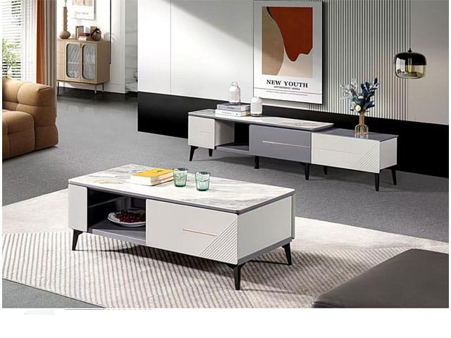 L’ensemble table téléviseur et table basse réf. 923 gris et beige est pensé pour répondre aux besoins d’aménagement des salons modernes. L’association de deux meubles assortis permet de créer une continuité visuelle et une organisation équilibrée de l’espace.