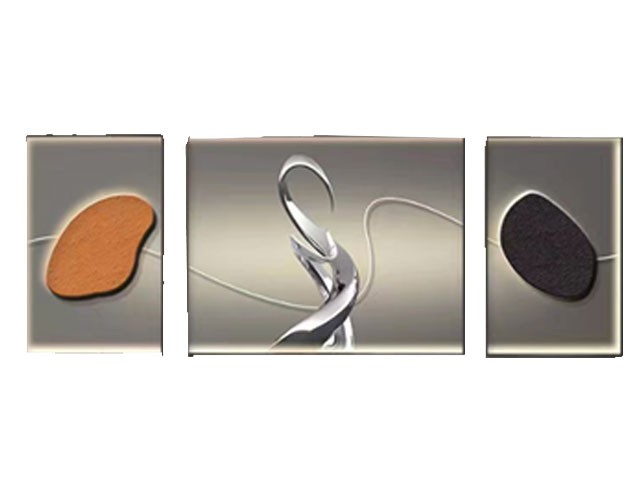 Les deux grands panneaux rectangulaires constituent les éléments principaux de l’ensemble, offrant une présence décorative forte et équilibrée. Le panneau central plus étroit, placé entre les deux, apporte une touche de finesse et de dynamisme, créant un contraste subtil qui enrichit la composition visuelle. L’ensemble forme une décoration murale moderne, linéaire et sophistiquée.