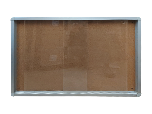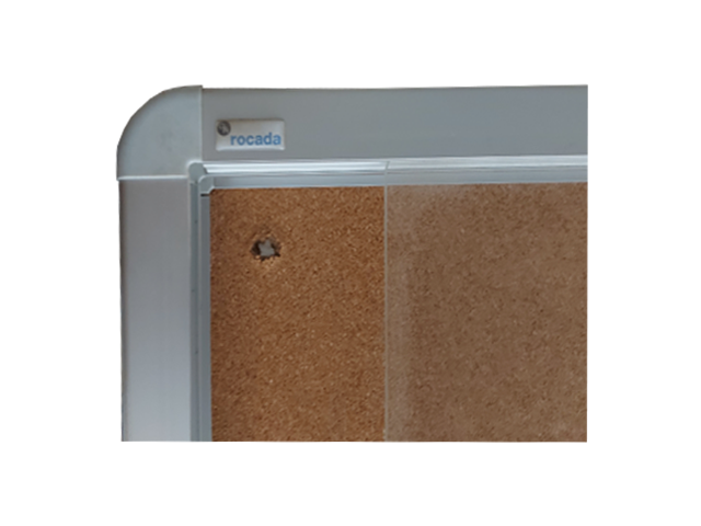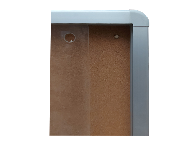 Conçue pour être utilisée à l’intérieur, elle est dotée d’un cadre en aluminium moderne, d’un revêtement en liège de qualité et de portes coulissantes vitrées.