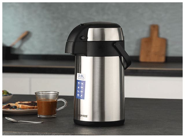Grâce à sa grande capacité de 3,5 litres, il permet de stocker une quantité généreuse de café, thé, eau ou toute autre boisson, idéale pour partager lors d’un repas, d’une réunion ou d’un rassemblement en plein air. Sa construction en inox durable avec une finition noir élégant allie robustesse et style, résistant aux chocs, aux rayures et à l’usage intensif.