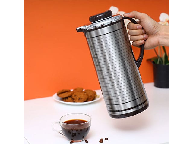 Le mécanisme de fermeture minimise les risques de fuite et facilite le service. Sa capacité de 1,3 litre répond aux besoins d’une journée de travail ou d’une utilisation familiale.