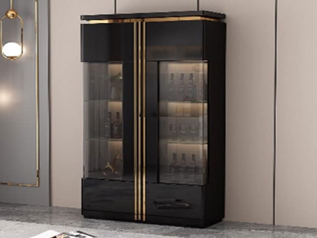 La finition noire associée aux détails gold crée un contraste moderne qui valorise le mobilier et s’accorde avec différents styles d’intérieur. Ce vaisselier offre plusieurs zones de stockage, pratiques pour structurer vos effets personnels et garder un environnement ordonné.