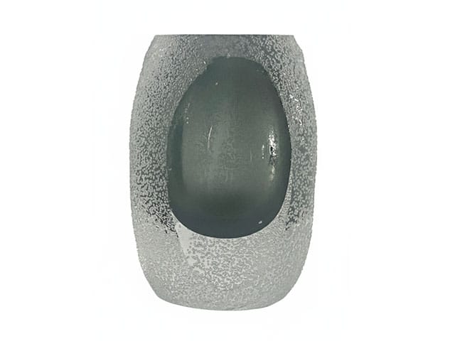 L’identité forte de cette collection réside dans son traitement de surface contrasté. La majeure partie de l’extérieur est recouverte d’une finition givrée ou sablée, à l’aspect minéral et granuleux, évoquant le givre, la pierre brute ou le verre travaillé à l’acide. Cette texture diffuse la lumière de manière douce et feutrée, créant une ambiance élégante et apaisante.